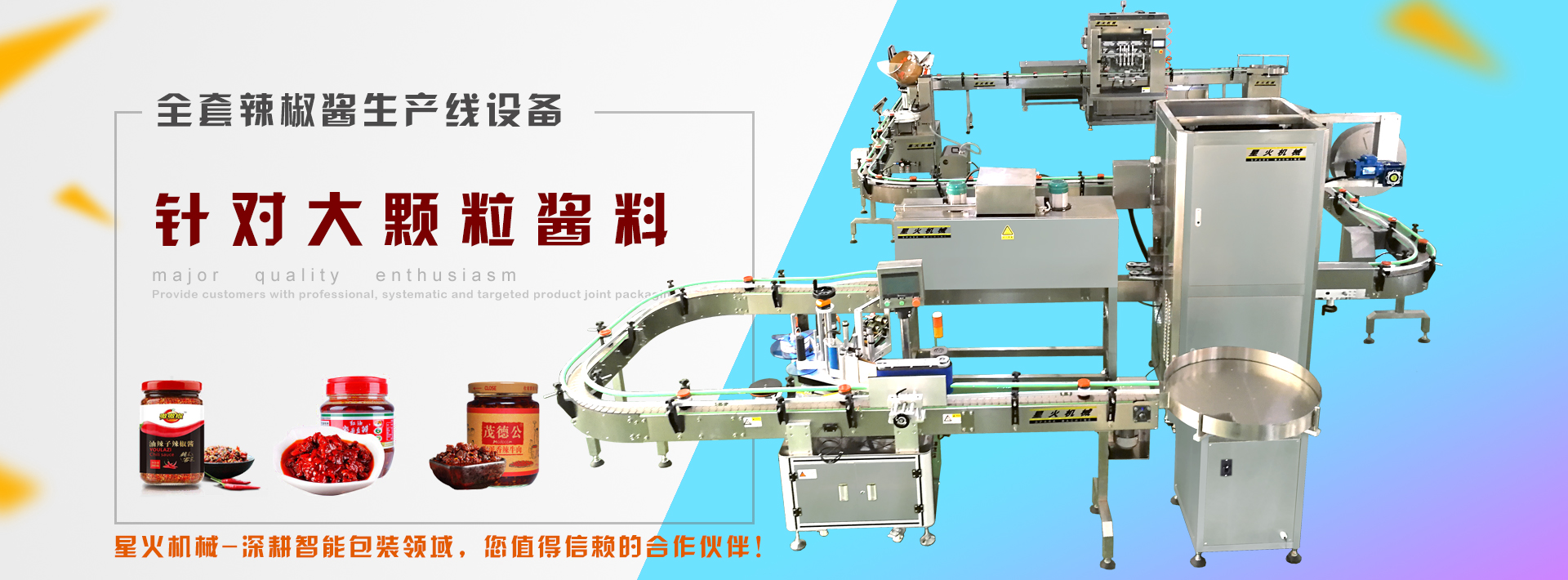 本公司擁有專業(yè)的技術(shù)人才、工程師和售后服務(wù)人員,形成一支高素質(zhì)年輕化極富團(tuán)隊(duì)創(chuàng)新精神的隊(duì)伍,可以及時(shí)地為客戶提供完善的售后服務(wù)。星火灌裝機(jī)有限公司是一家多年設(shè)計(jì)、生產(chǎn)、安裝、銷售及技術(shù)服務(wù)的專業(yè)化公司。從事食品、制藥、化工包裝機(jī)械、灌裝機(jī)械、無人化智能包裝生成線的專業(yè)制造廠家種類豐富,產(chǎn)品適用于液體、膏體、粉劑、顆粒、醬料、辣椒醬等多種產(chǎn)品的自動(dòng)化灌裝、包裝,廠家直銷,專業(yè)的自動(dòng)化辣椒醬生產(chǎn)線加工設(shè)備制造基地,為廣大的新老客戶提供了質(zhì)優(yōu)價(jià)廉的包裝機(jī)產(chǎn)品。公司誠信經(jīng)營,憑借多年的經(jīng)驗(yàn),專業(yè)水平和純熟的技術(shù),得到了快速的發(fā)展。